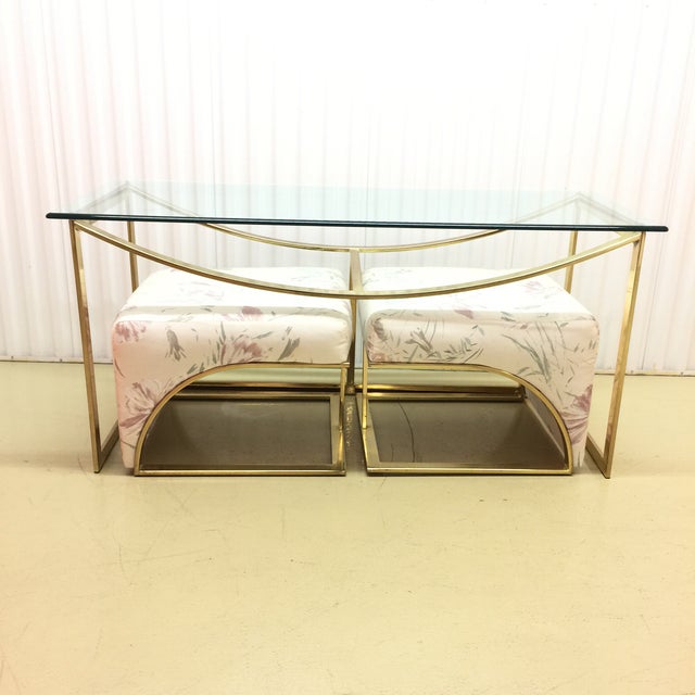 Small living rooms, open spaces with kitchen, little holiday homes: This round coffee table with nesting stools will look marvelous in any room. Elegant chic brown console table with stools stock photo picture. It is also a great play table. Discover small, narrow yet elegant designs in brass, glass and gold, and rustic options in oak, pine.
